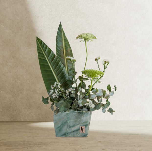 Embrace nature’s charm with our fresh green floral display in a marble vase—an elegant accent for any room, bringing a touch of tranquility.